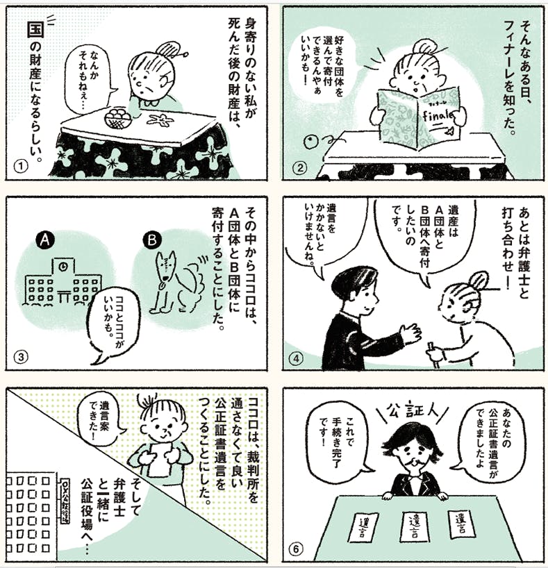 「finale:」、とても素晴らしい活動だと思います!!自身が築き上げた財産を、自身が応援したい活動をしている団体に遺せることは、遺贈される方にとって、人生最後のハッピー!