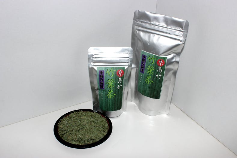 ▲茶葉と糸島竹 竹葉茶15gと30g