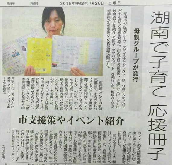 2018/08/02 10:42私たちの挑戦もあと少しとなりました! これまで私たちの話しを聞いていただいた皆様、そしてご支援いただいた皆様、ありがとうございます。 6月14日からスタートし、7月には子育て情報誌ママパスポート第一号を発行しました。市内の園、支援センター、保健センター、図書館などに配布すると共に、民生委員さんにも協力してもらい赤ちゃん訪問で、確実にママに手渡ししてもらっています。湖南市で子育てしたい人を増やしたい、ママを笑顔にしたい、ママの活躍の場を広げたい!という思いで今回の挑戦をしています。お返しの品はどれも湖南市で頑張っておられる地域の企業様のものです。親子だけではなく、地域企業や市の職員さん、そして市民全員が笑顔で暮らしていけるように継続して活動をしていくために、まだまだ皆様からのご支援、ご協力が必要です! お返しに添える感謝状も心を込めて準備していますので皆様、どうぞよろしくお願い致します‼ 私達の活動が掲載されました(^.^) 皆様の応援のおかげです!! もっと見る