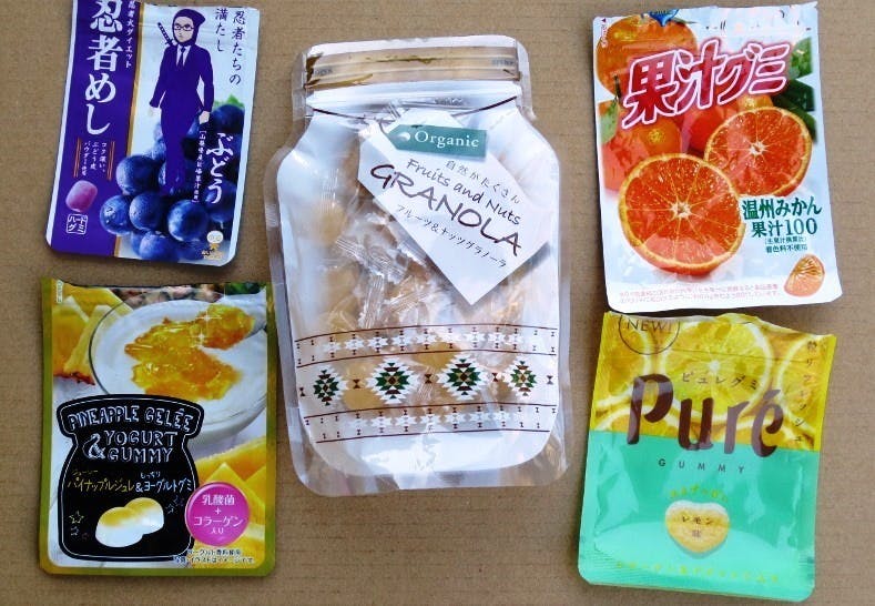 面白い形の袋は コンビニとかで売っているグミの 2から2.5倍の入り数を予定していました。
