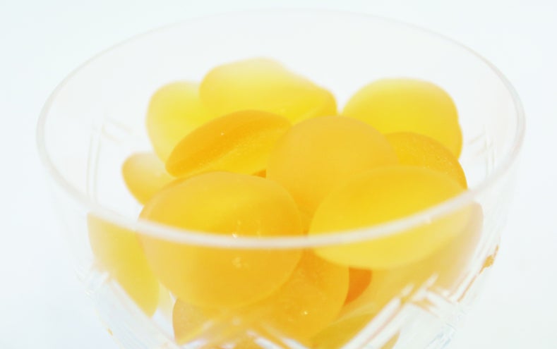 ▲じゃばらグミのイメージです。(写真はみかん果汁グミ)