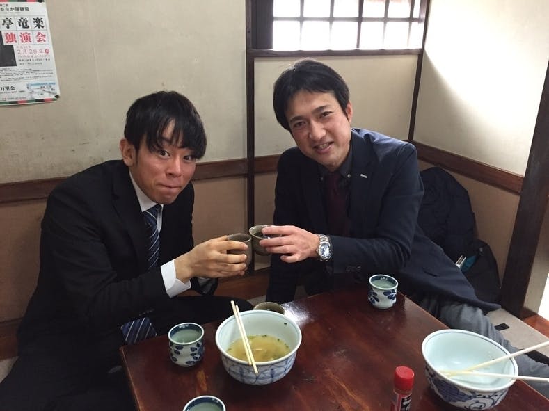アットホームなうどん屋さんでご飯をする日下くんと川田さん