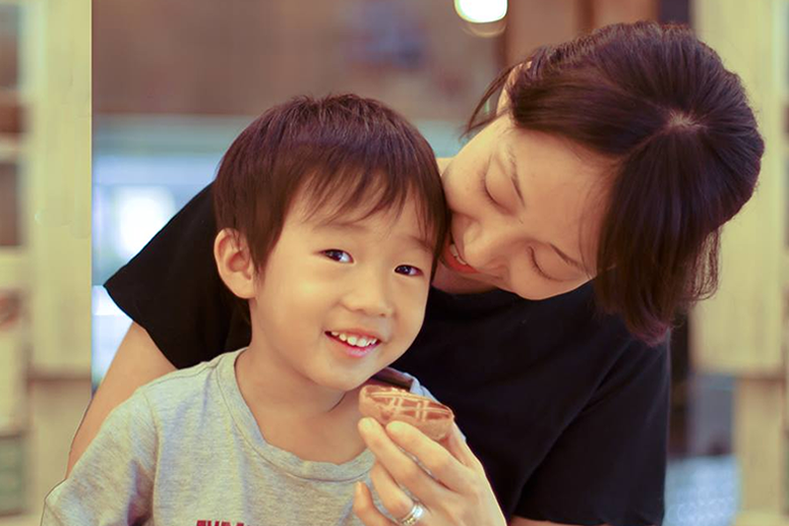 この度、私はこのお菓子の名前 『Premium Galette』の英字を揮毫させていただきました。ご夫婦のそばにはお二人の息子さんが一緒に楽しそうに支えている。そんなファミリーの愛ある風景を文字に託しました。