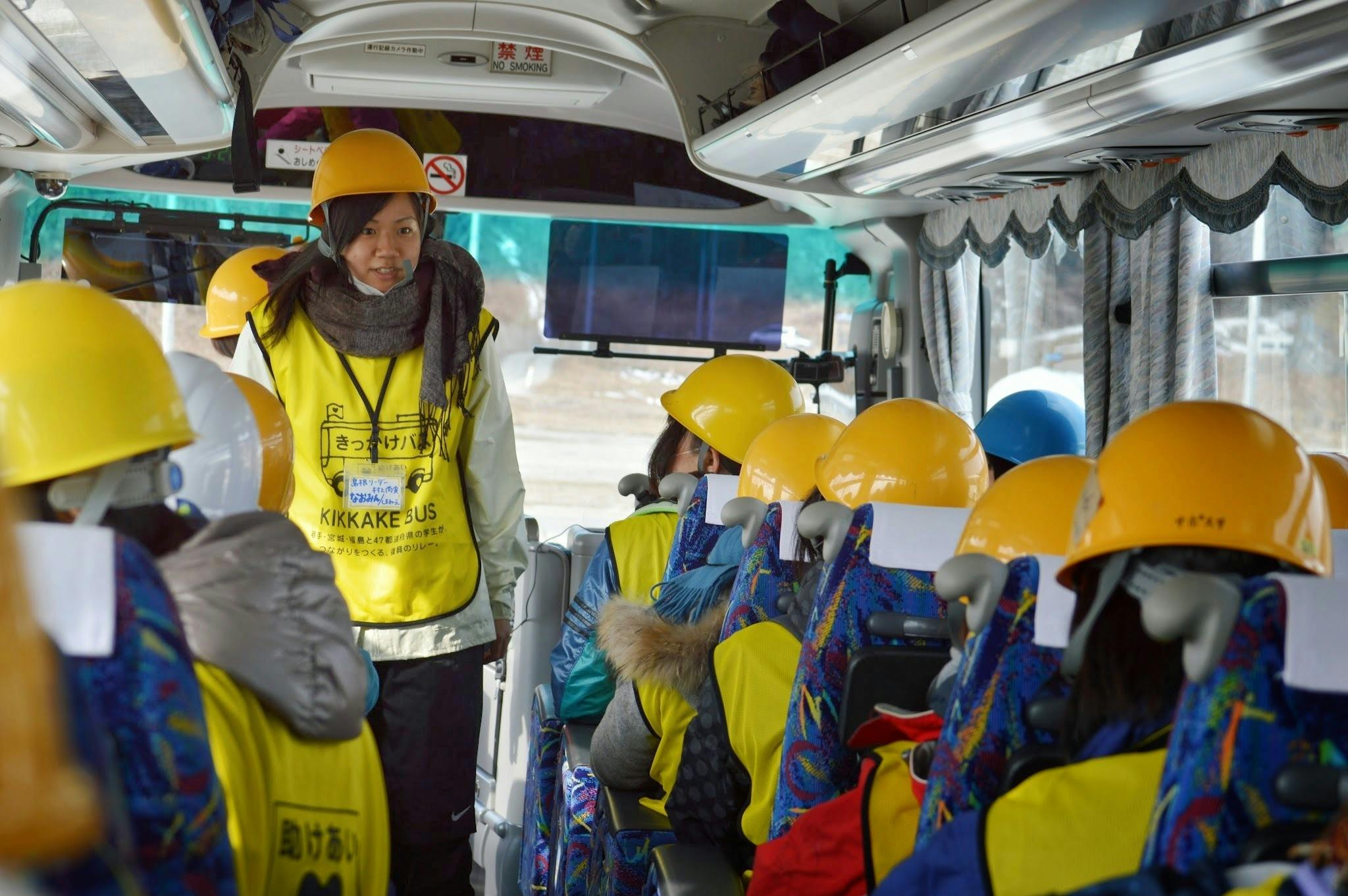 バス内で4日間の振り返りをします。語り部の方へのお礼の手紙、16日のワークショップで話した5年後に向けた自分の行動計画などを参加者の方々と一緒に考えるのも良いと思います。