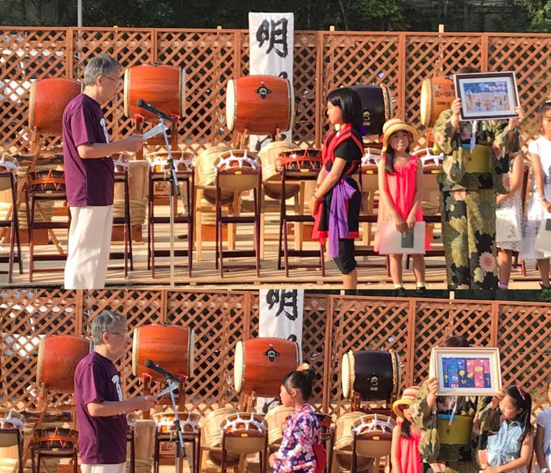 ▼多くの子供たちがすわやま盆おどりのポスターを描いてくれました。表彰式の様子▼