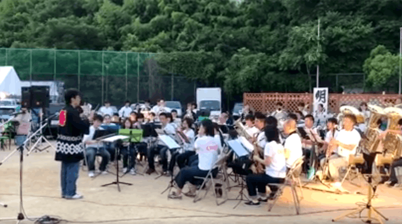最後は、鍵盤ハーモニカのパイオニアのミュージシャンが、夏の終わりと秋の訪れを奏で、婦人会や地域の大人・子どもによる盆踊りの輪ができます。グランド内外ではPTA/婦人会/小学校スポーツクラブ/町内会の方々による、夜店も開かれています。