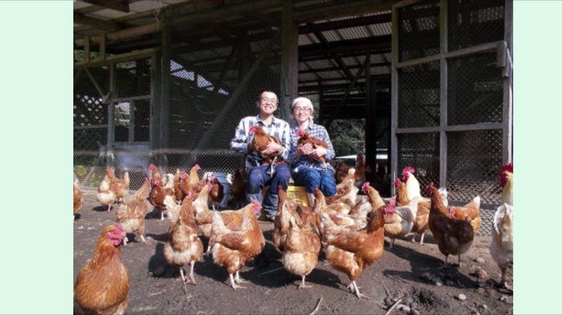 都城市にあるしょうご農園の佐々木昌吾さん毎年中南米からの研修生を受け入れ、スペイン語で研修を実施できる有機農業、自然養鶏のスペシャリスト。