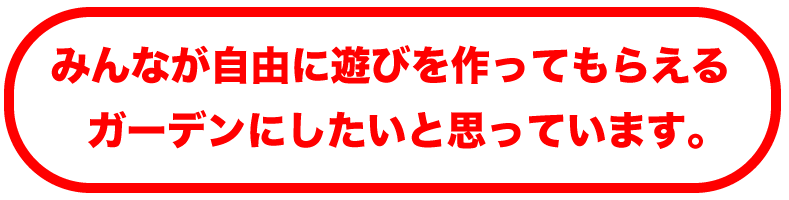 子供たちが素敵な思い出が作れる場所、みんなの心が解き放てる場所、“切り花”や“枝物”の栽培ができたり、人の集まれるガーデンを目指します。