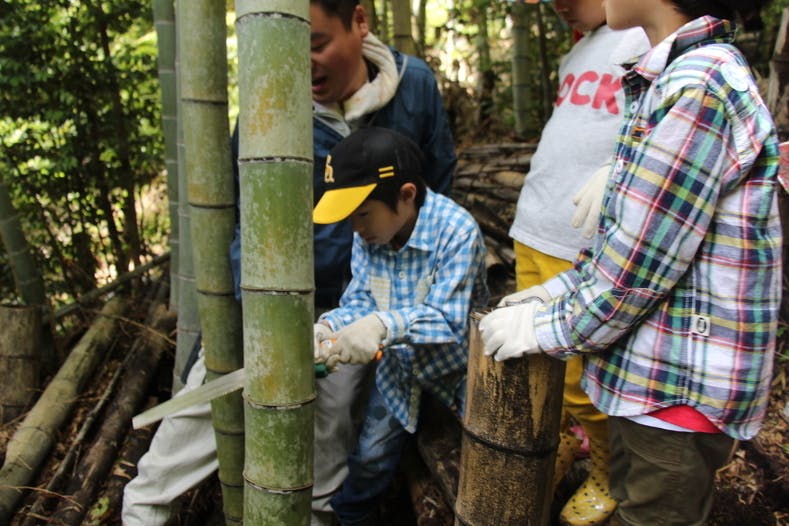 竹林からは筍も取ることができ恵がいっぱいあります。そんな「竹」を遊びながら、学びながらたくさん使うことで、本来の元気な竹林の役に立ち、子供も大人も自然の中でのびのびと体験活動を行うことが出来ます。