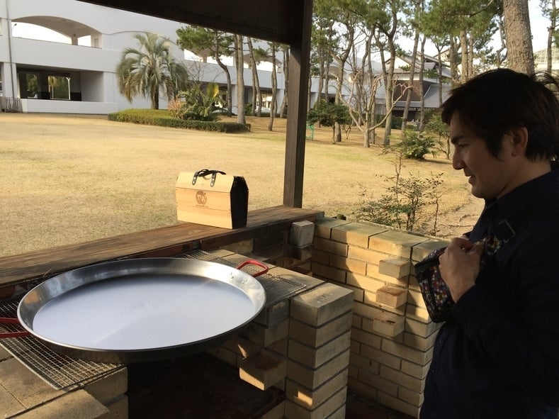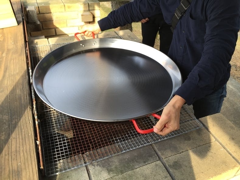 本場のパエリアと同じ、薪で調理する釜があるんです!