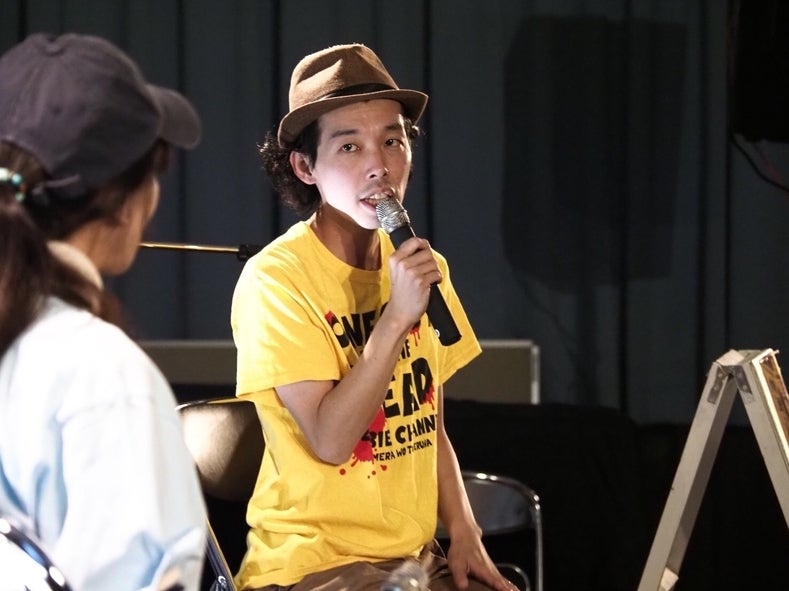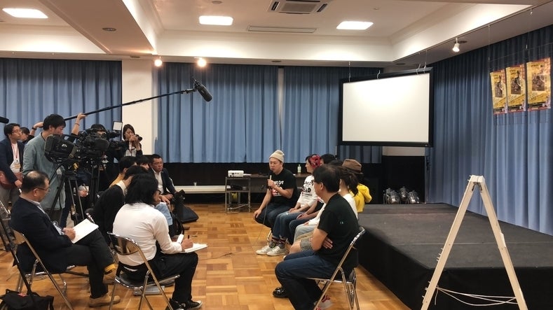 →実は日吉座上映中、裏ではゲストの方には囲み取材を受けて頂いてました。