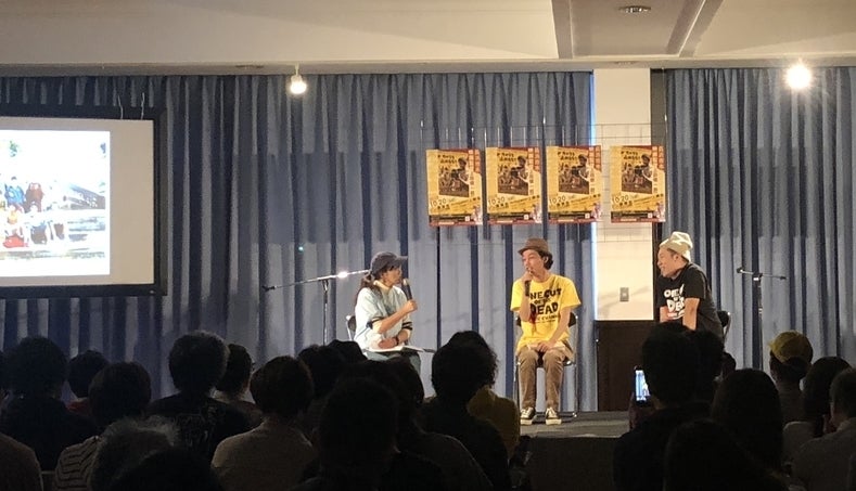 →上田監督の幼少期にはじまり、鈴木君との学生時代から現在、2人から滋賀や木之本への気持ちの変化、映画・音楽に対しての気持ち、次回作含め今後の話をしてくれました。会場で事前に受け付けていた質問も読み上がられ好評でした。そして最後はサプライズで、木之本の子供達、北星高校演劇部のみなさんによるゾンビ乱入で大盛り上がり!交遊館 Studioこほくの皆様お疲れ様でした!