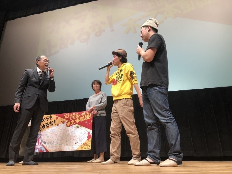 登壇:上田慎一郎監督、鈴木伸宏さん、濱津隆之さん、真魚さん、しゅはまはるみさん、秋山ゆずきさん、市橋プロデューサー、上田監督ご両親、鈴木君ご両親、竹原芳子さん(サプライズゲスト)