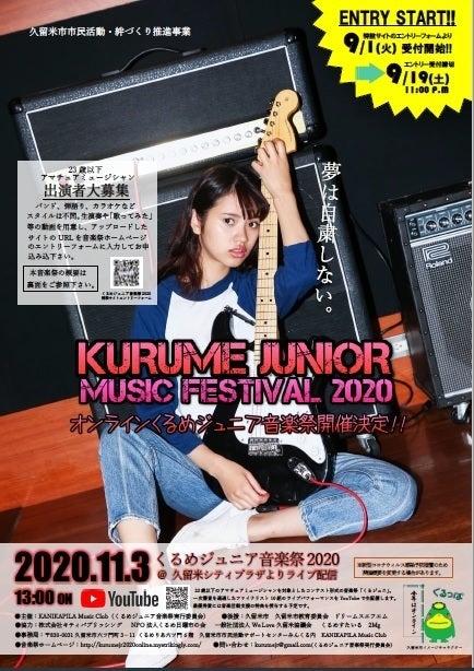 今年はカラオケでのエントリーも可としております。エントリー方法等の詳細はくるジュニ2020特設サイトをご参照いただきますようよろしくお願いします。