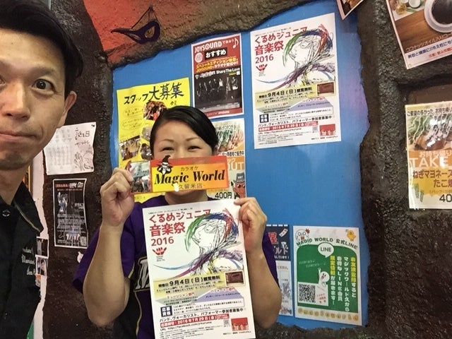 店長の江頭さんは、チェッカーズの大大ファンとのこと。KANIKAPILAの応援もして下さってます!^^v 今回あらためてくるめジュニア音楽祭2016開催趣意をご説明申し上げたところ、とても共感していただき、「ここに来る子供たちにどんどんエントリーを勧めます!」とのこと。