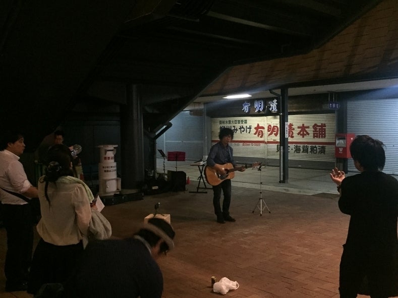 反響板のような効果かな?ギターも声も駅構内にいい感じに響きわたっていました。