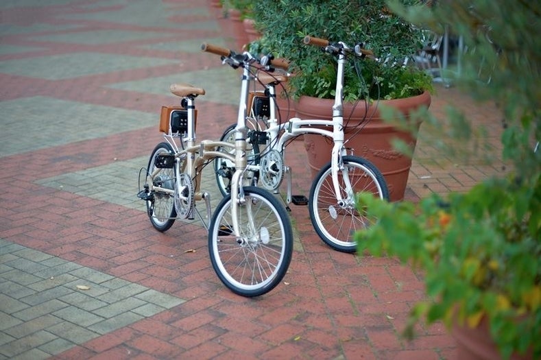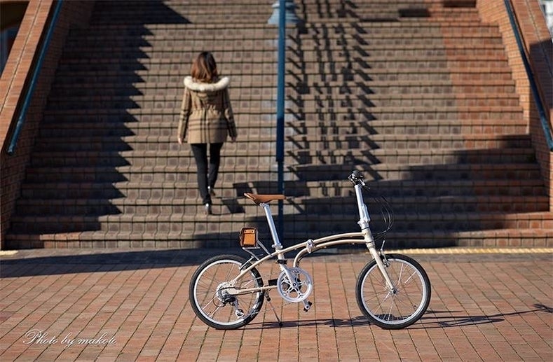 自転車は、誰にでも乗れるように国産メーカの電動アシスト付きミニベロ(小径車)