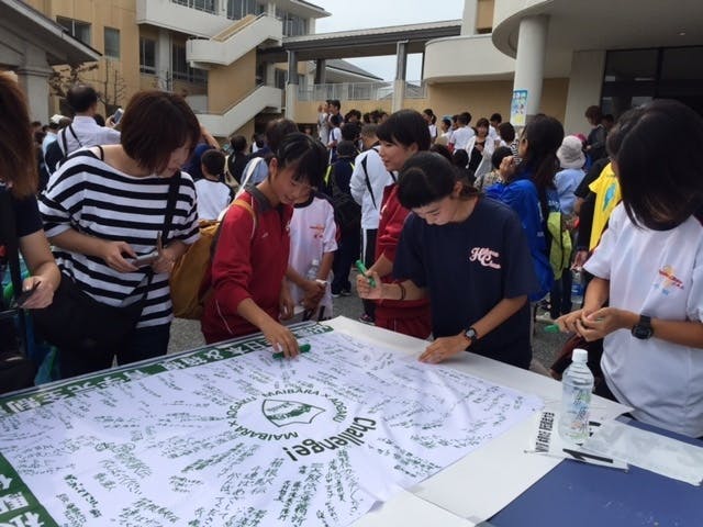 ▲箱根駅伝での活躍を願って参加者が寄せ書きでエール