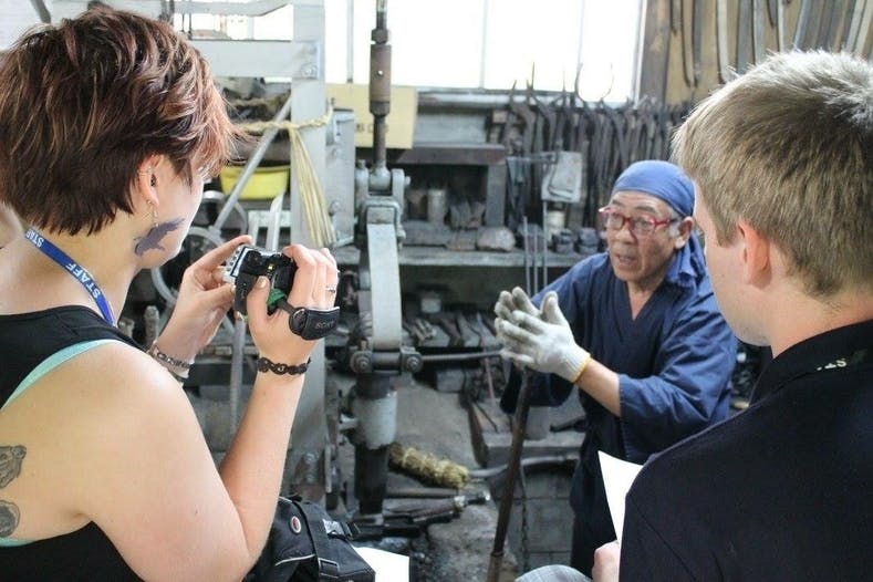 ▲毎年ワールドキャンパスのメンバー達に大人気で一生忘れられない経験の一つとなっている刀鍛冶見学。その場所は「松永日本刀剣鍛錬所」です。