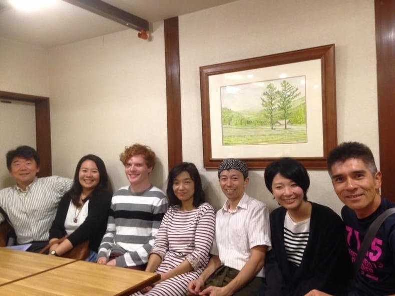 ▲実行委員のメンバーと、ワールドキャンパスインターナショナルの西村さん、本田さんです。