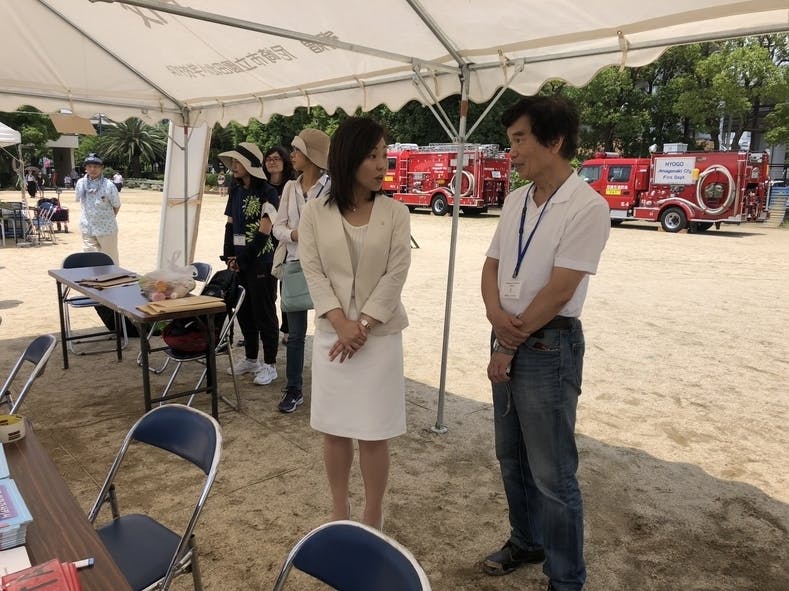 ▲防災イベントにて(シンフォニー代表山崎と尼崎市長)▲