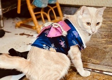 猫もコスプレ⁉︎ 尼崎の三和商店街の猫カフェ、りるあんじゅさんの姫猫ちゃん。