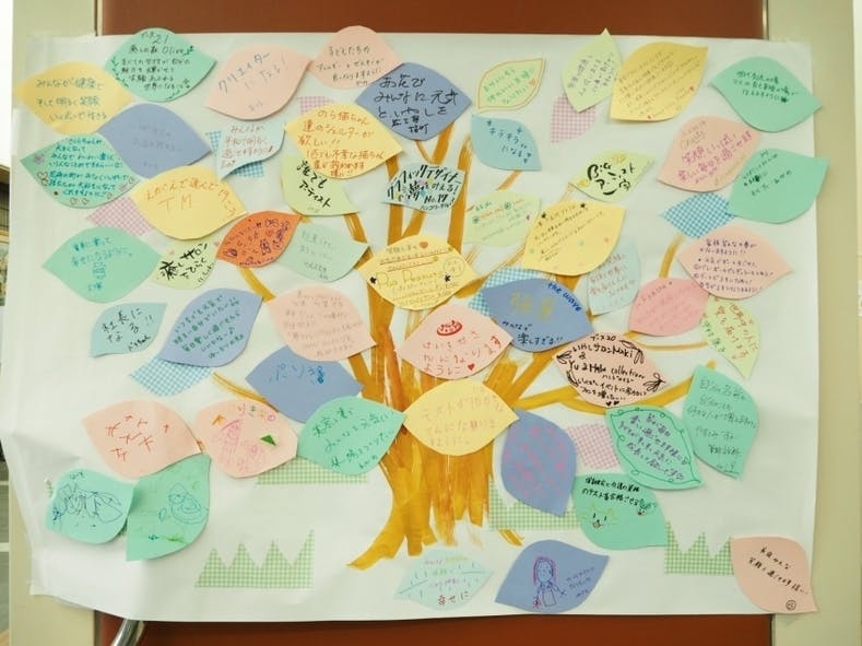 「あなたの夢はなんですか?」一人一人の夢を書き込んでもらい一つの作品をつくりあげる。