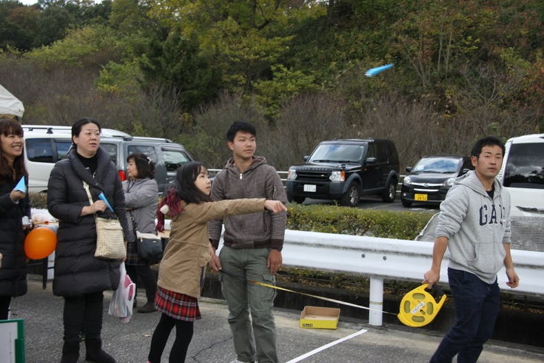 ・折り紙1枚で紙ヒコーキを作成し飛行距離を競います。