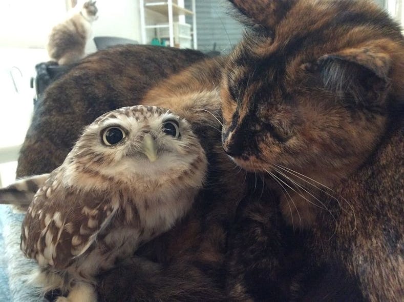小金目フクロウ という種類です。2012年5月1日生まれの6歳です。 猫じゃらしで遊ぶのが大好きです。ここにいる猫ちゃんともとても仲良しです。