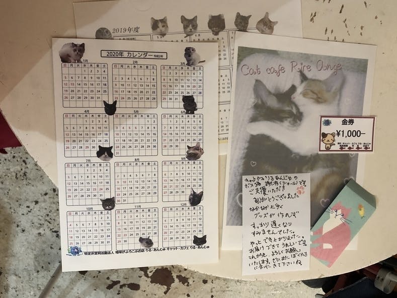 ①キャットカフェ入場券+キャットカフェ30分間利用料+猫カレンダー