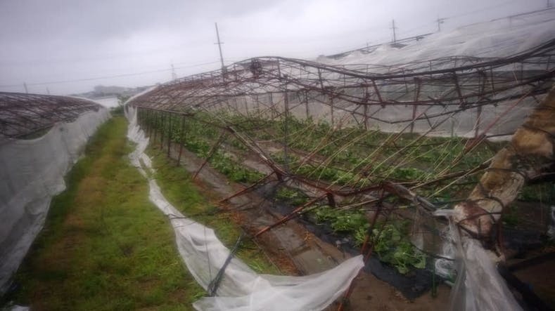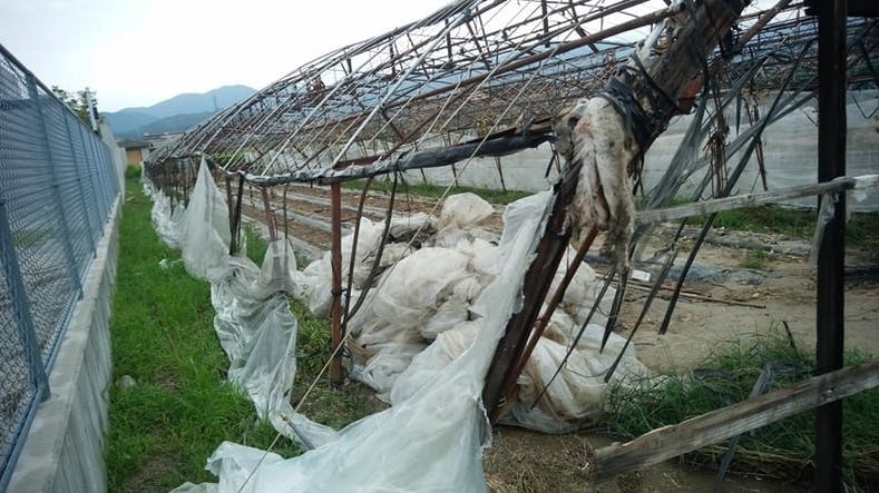 台風直後、ビニール飛散やハウスの倒壊、露地茄子の壊滅等で地域農家が愕然としました。