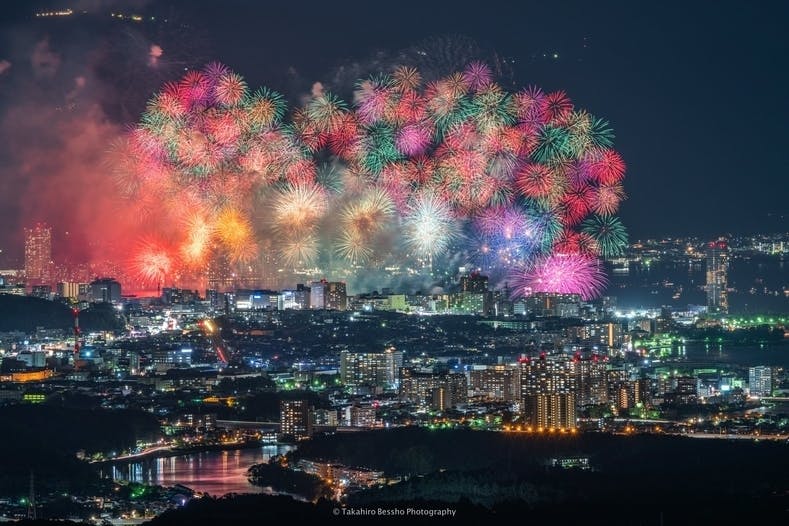 そしてこちら、8月はびわ湖大花火大会!大津の街と、草津の街、そして湖面に写る花火が美しい!
