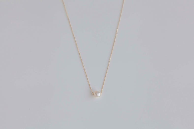 通常購入でも1万円以上のネックレス。真珠はびわ湖の無核ビンテージパール 4mm~5mm珠。チェーンはk10YG 40cm カットアズキチェーン。