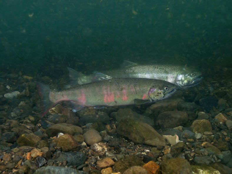 (天野川で泳ぐビワマス)