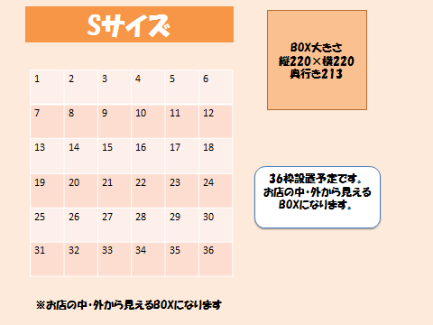 BOXのSサイズはお店の中と外両方から見れるように設置いたします。