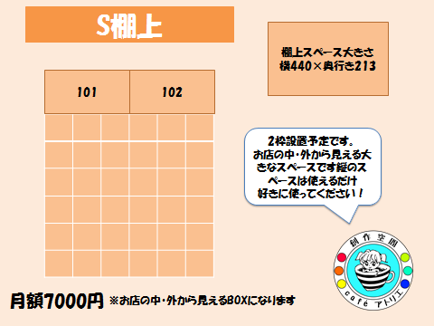Sサイズの棚の上も設置スペースとして貸し出します!