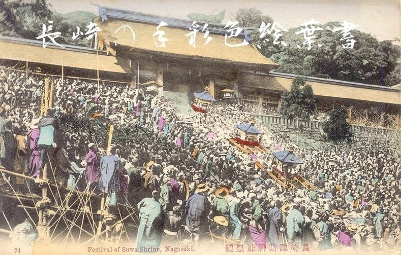 長崎のお祭りの『おくんち』で多くの人達が盛大に盛り上がっている場面や、日本の産業を支えた『三菱長崎造船所』などの画像がすべて新鮮でした。