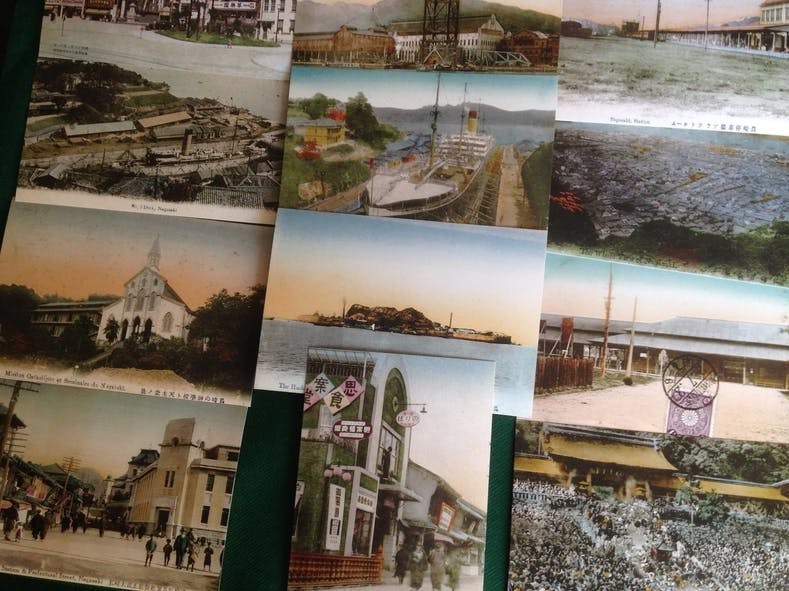 昔の長崎の風景を写している手彩色絵葉書と現在の場所と比べるととても楽しいです。