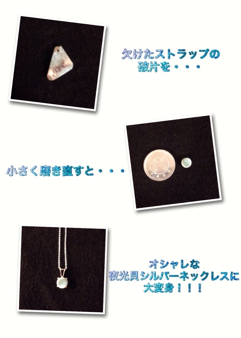 悠ヶ風では、商品を買ってくれたお客様へのアフターサービスやメンテナンスに力を入れています、修学旅行の時に買った数年前の思い出のネックレスの磨き直しや、ストラップに付いている夜光貝を結婚指輪やペンダントに作り変えるリノベーションなどの依頼も受けています。