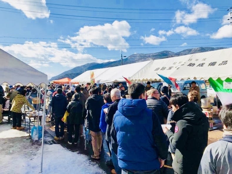 これは勿体無いと、今年の2月に開催したジビエグランプリイベント「西浅井ジビエ村」では、ジビエ料理を食べられるお店を10店舗程出店し、猪の丸焼きを来場者にふるまうと、雪の積もる真冬にも関わらず150人程の長蛇の列が並びました。