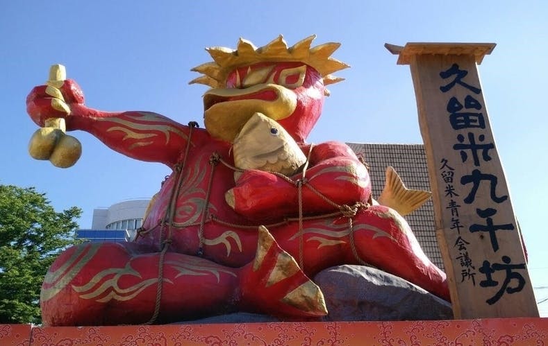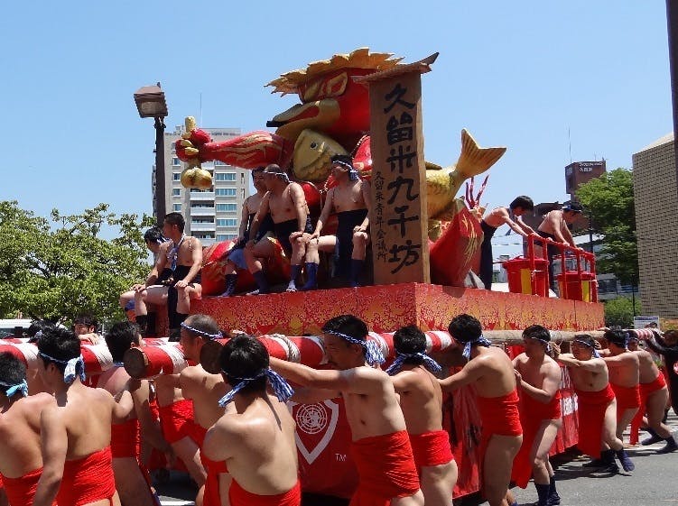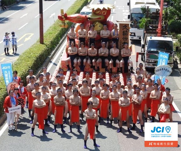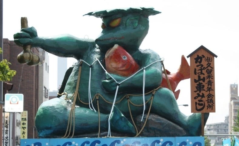 毎年8月4日に福岡県久留米市で行われる『水の祭典 久留米まつり』は今年で第45回目を迎え、今では筑後地区最大のまつりにまで発展しました。このまつりのパレードを大いに賑わすのが久留米青年会議所が担っている全長12mの巨大河童山車御輿『久留米九千坊』であり、パレードの主役と言っても過言ではありません。