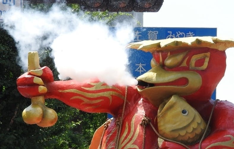 【 現在の久留米九千坊が口からスモークを噴射しているところ 】