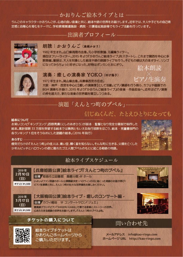 そんな、かおりんごさんが来年2月兵庫姫路、3月大阪梅田で絵本ライブをされます。