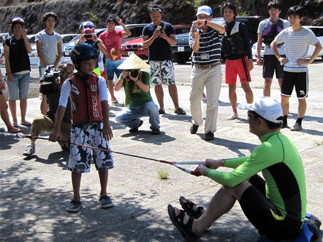 河野知事に水上スキー講習会を体験していただいた時の様子