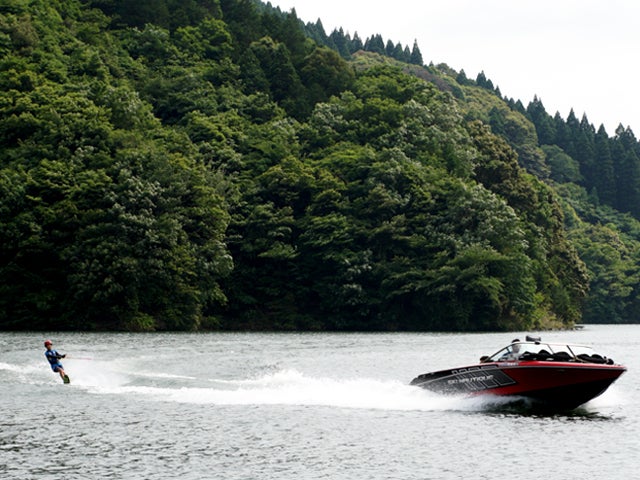広沢ダムにてスキーボートを使って練習する様子