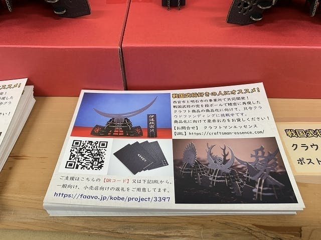 展示場所には支援ページに直接アクセス出来るQRコード付きのポストコードも置いています。