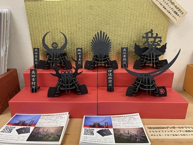 この度ですがダンボールの戦国武将兜、立体紙組絵の実物展示始めました。