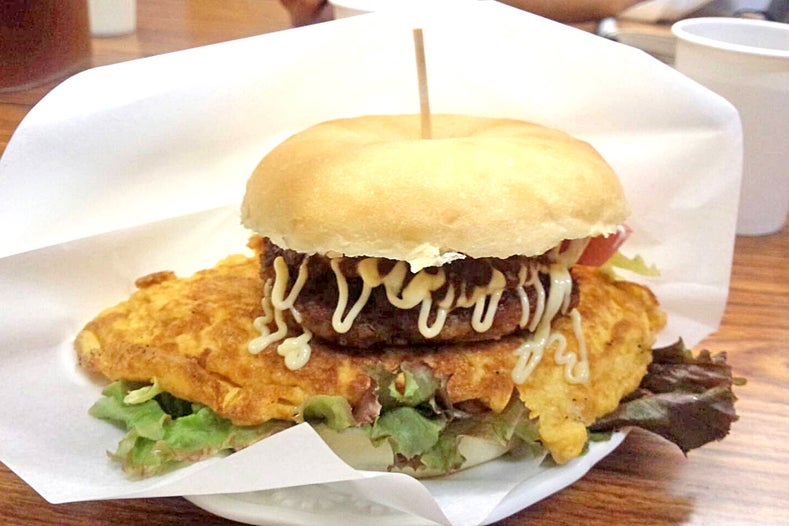 パンの絵を描くため『阿蘇赤牛ベーグルバーガー』『熊本復興サンド』『ウインナーナポリタン』それに『ハムチーズ』を参考に作って頂きました。