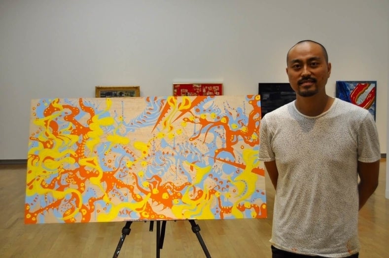 先日、アジア美術館にて作品展示とライブペイントを行いました。