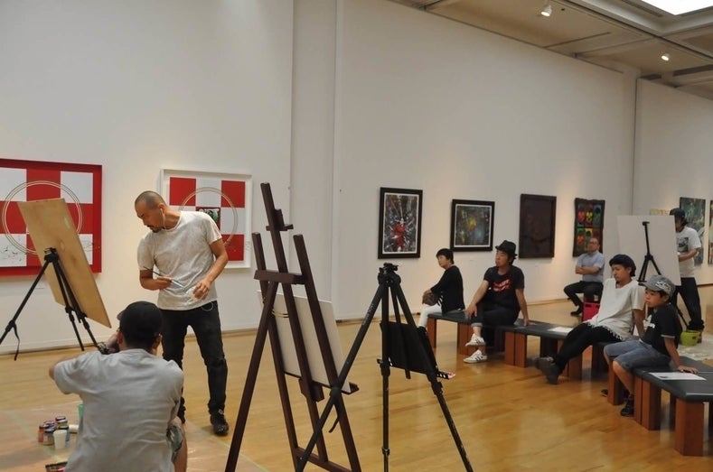絵を描いてる時は皆様にも観て頂けますので、アートの世界を楽しんで頂けたらと思います。参加できるアートスペースもあります。是非いらしてください!